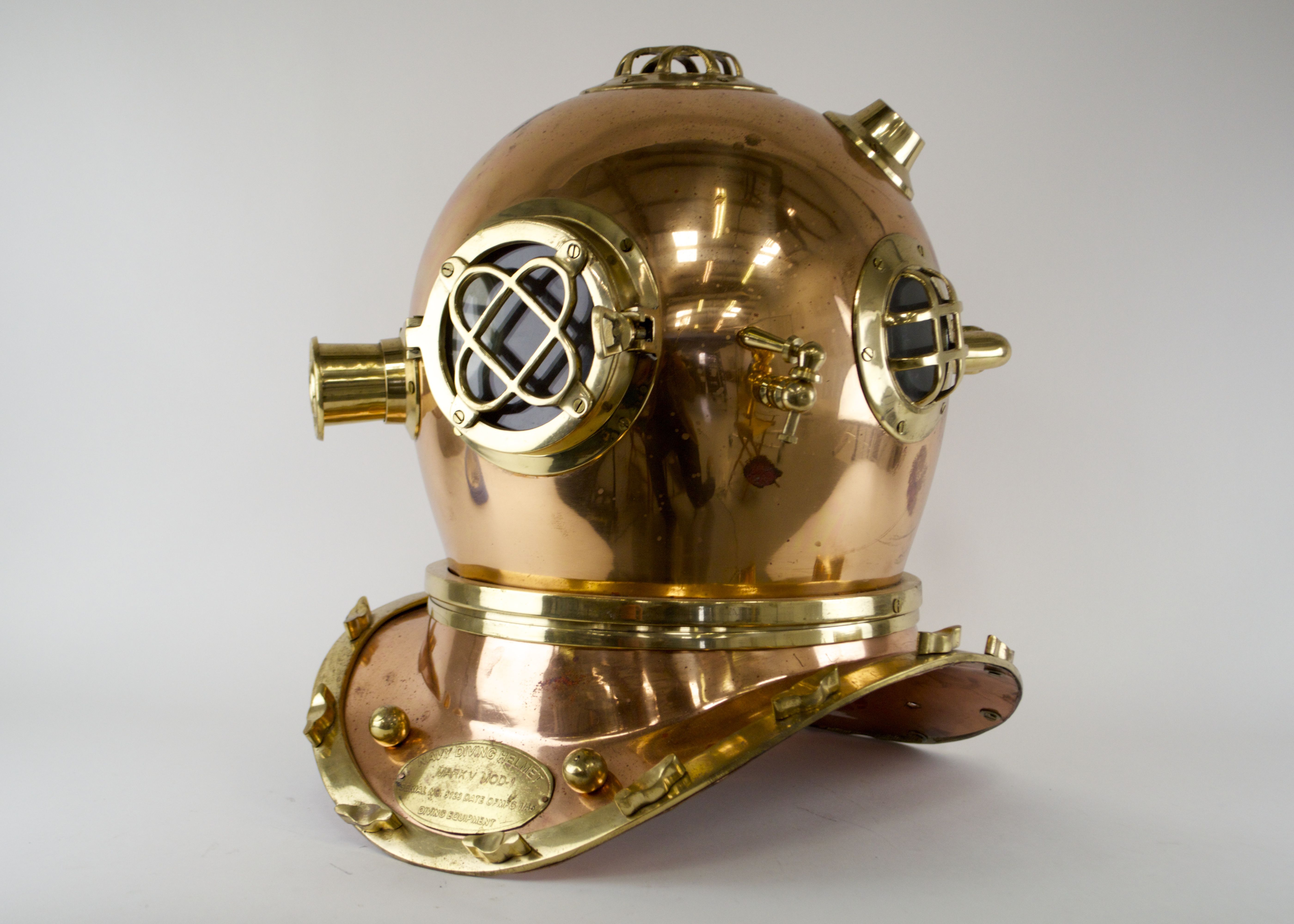 Buy diving helmet marine & maritime antiques and get the best deals at the lowest prices on ebay! During that time there were only four manufacturers of this model. Desco also continues to use their original desco equipment to produce mark v helmets under their name. The helmet was in excellent condition with its original tinning. A woman tries out the navy mark v diving helmet and viking diving dress at the 2013 nedeg memorial day rally held at dutch springs, pennsylvania.